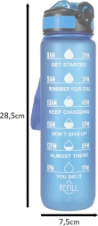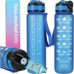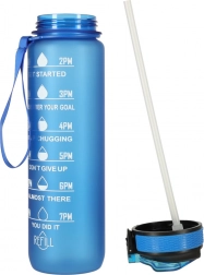 Praktična boca za vodu zapremnine 1 l od izdržljivog Tritana pomoći će vam održavati hidrataciju tijekom cijelog dana. Zahvaljujući integriranoj slamci pijete udobno bez naginjanja, vremenske oznake s motivacijskim frazama podsjećaju na redovito pijenje, a siguran poklopac s osiguračem sprječava neželjeno otvaranje. Bez BPA, lagana, izdržljiva i odlična za sport, posao i putovanja.