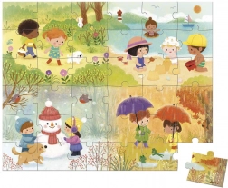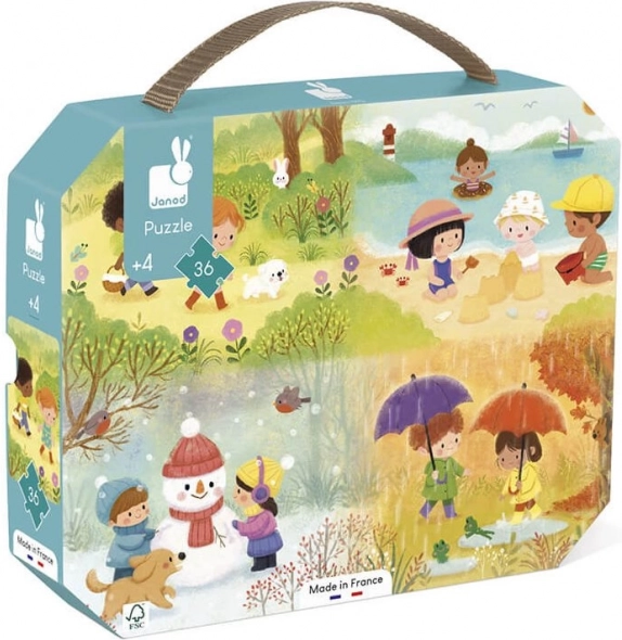 Stilski puzzle JANOD donosi djeci zabavan i edukativan način upoznavanja proljeća, ljeta, jeseni i zime. Zahvaljujući praktičnom kovčežiću puzzle se lako prenosi, ništa se ne izgubi i slaganje je zabavno gdje god poželite.