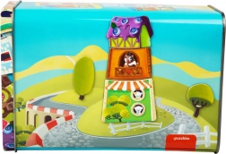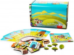 Set sadrži 10 papirnatih predložaka na temelju kojih se mogu graditi kućice. Magnetski dijelovi od tvrdog kartona sa sjajnom površinom lako se brišu vlažnom krpom. Izrađeno od ekološkog drveta i namijenjeno djeci od 3 godine nadalje. Proizvedeno u Europi.