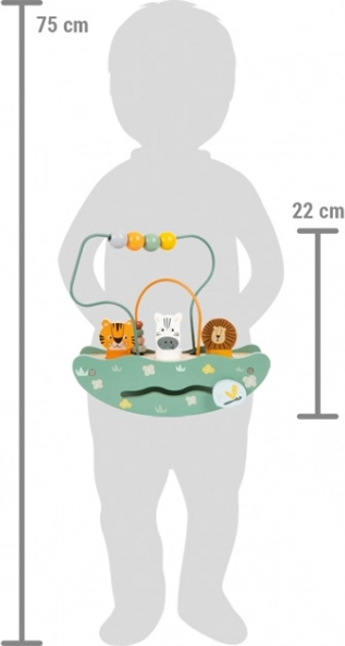 Ovaj svestrani motorički labirint s ljuljačkom idealan je alat za djecu koja žele učiti i istodobno se igrati. Igračka je izrađena od čvrstog drva i sadrži dvije žičane petlje sa šarenim perlicama. Petlje potiču trening finih motoričkih vještina i koordinaciju oka i ruke kod malih istraživača.