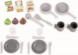 Kuhinju čine sudoper s pipom, pećnica, perilica posuđa, hladnjak s vratima koja se otvaraju i aparat za kavu na kapsule s prostorom za njihovo odlaganje. U paketu je 22–23 komada pribora (lonci, tanjuri, pribor za jelo, šalice, čaše, kapsule, kuhinjski pribor, namirnice). Zahvaljujući kotačićima i pametnoj sklopivoj konstrukciji nakon igre je lako premjestiti i spremiti.