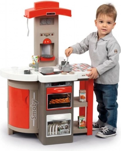 Elektronička dječja kuhinjica SMOBY MINI TEFAL OpenCook u modernim bojama nudi svjetlosne i zvučne efekte, sklopivu konstrukciju i kotačiće za lako premještanje. Ne nedostaju sudoper s pipom, ploče za kuhanje s efektom kuhanja, pećnica, perilica posuđa, hladnjak ni integrirani aparat za kavu na kapsule. Sjajno za razvoj mašte, fine motorike i zajedničke igre.