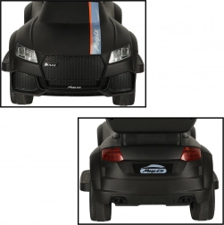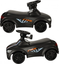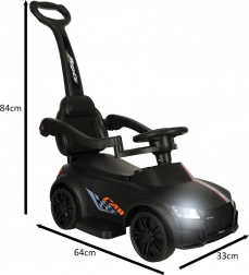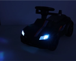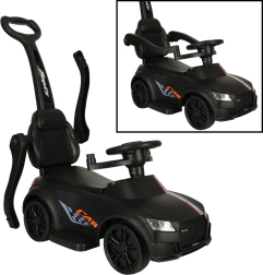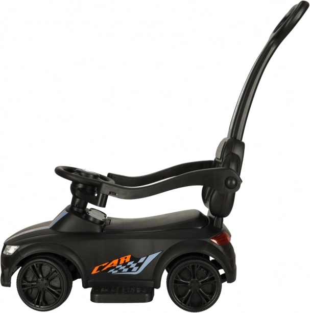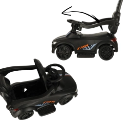 Crna guralica–gurajuće autić 3-u-1 raste s djetetom od 12 mjeseci: nudi upravljačku ručku za roditelje, sigurnosne ograde i naslon za prve vožnje te mogućnost postupnog uklanjanja dijelova za samostalnu vožnju na guralici. Realistični svjetlosni efekti i zvukovi (na 3× AA) pretvaraju svaku vožnju u zabavnu avanturu.