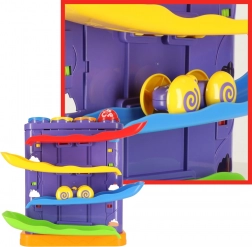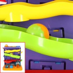 Staza ima dva neovisna kruga – kuglični i automobilski – pa se uz nju mogu zabavljati jedno ili više djece istovremeno. Robusna plastična izvedba lako se čisti i spremna je za svakodnevnu igru.