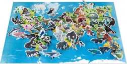 Veliki format nakon slaganja pruža preglednu kartu svijeta na kojoj djeca mogu pridruživati 50 kartonskih figurica njihovim prirodnim staništima. Sve to u čvrstoj i živopisnoj kvaliteti koja podnosi ponovljenu upotrebu.