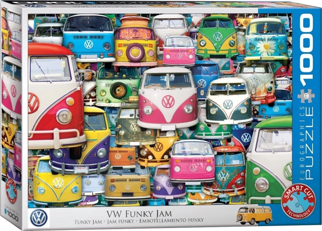 Otkrijte izazov koji će vas zaokupiti: slagalica EUROGRAPHICS s motivom Volkswagen Bus: Funky Jam donosi detaljnu ilustraciju i netradicionalne oblike dijelova koji narušavaju standardnu mrežu. Svaki dio precizno pristaje, a njegovi neobični oblici povećavaju napetost i zadovoljstvo svakim točnim spajanjem.