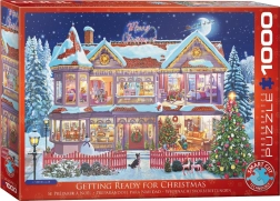 Puzzle EUROGRAPHICS „Božićne pripreme” donosi blagdansku atmosferu i ujedno izazov za ljubitelje slagalica. Posebna matrica ne kopira standardnu mrežu – kutovi i rubovi dijelova nisu uvijek u jednoj osi, što povećava zahtjevnost i zabavnost slaganja.