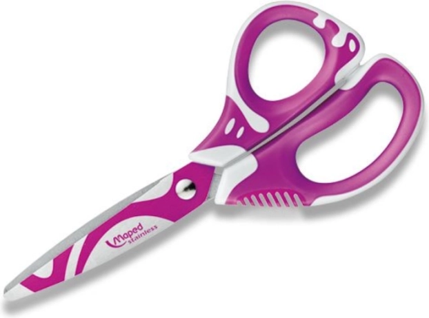 Škare MAPED Zenoa Fit 13 cm odličan su izbor za školu, kućanstvo i kreativnu radionicu. Zahvaljujući ergonomskom obliku i mekim, simetričnim ručkama, udobno leže u desnoj i lijevoj ruci. Zaobljeni vrhovi povećavaju sigurnost pri radu, što će posebno cijeniti djeca i početnici.