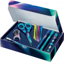 Stilski likovni set Maped Nightfall donosi sve potrebno za crtanje i stvaranje u jednom poklon-pakiranju. Atraktivan dizajn u metalik nijansama i pažljivo odabrani pribor čine ga idealnim izborom za školu, ured i putovanja. Sadrži 11 kvalitetnih komada, uključujući drvene bojice, flomastere, škare, šiljilo i kugličnu olovku Twin Tip.