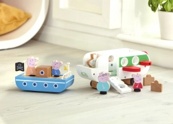 Drveni avion PRASE PEPPA je kvalitetna igračka nadahnuta omiljenim serijalom. Zahvaljujući kompaktnim dimenzijama dobro leži u dječjoj ruci, glatko se kreće po podu, a otvarajuća vrata omogućuju malim pilotima lako ukrcavanje figurica i kovčega.