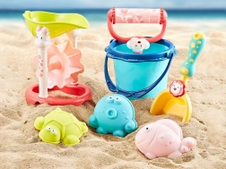 Ovaj set od 7 dijelova sadrži sve što vaše dijete treba za kreativnu igru u pijesku. Kanta, lopatica, tri šarena kalupa i sito s vjetrenjačom omogućuju bezbroj načina za razvoj dječje mašte i fine motorike. Igra u pijesku nikada neće dosaditi, a s ovim setom svaka igra će biti još zabavnija. Zahvaljujući atraktivnim bojama i zanimljivim oblicima životinja, set će biti omiljen svakom malom graditelju.