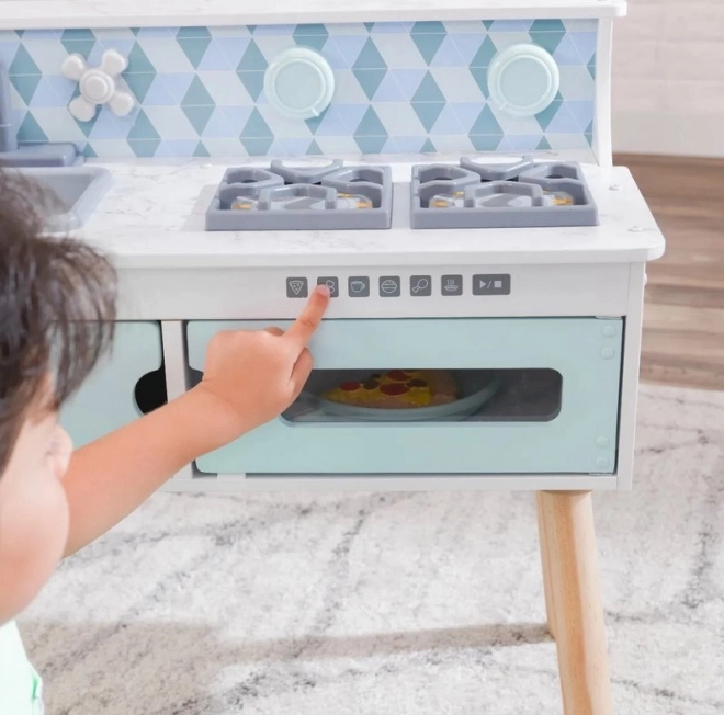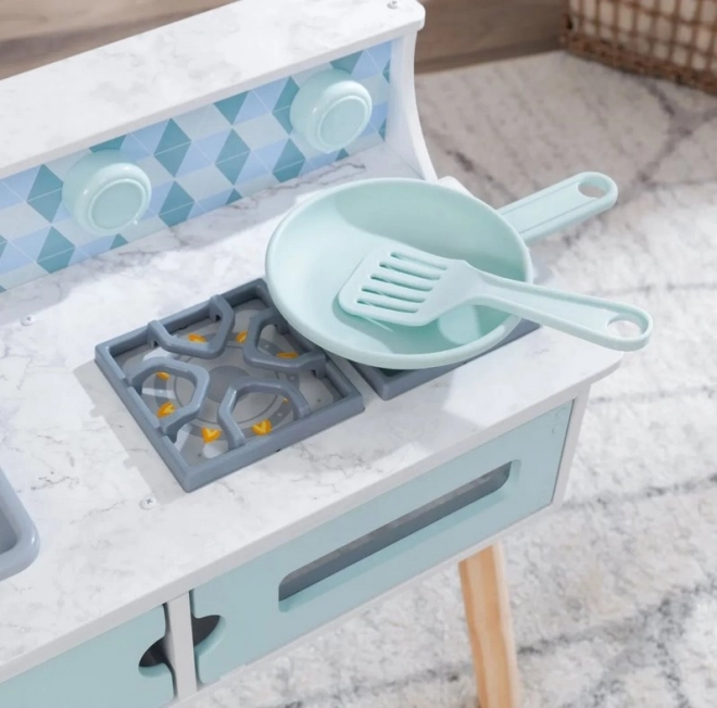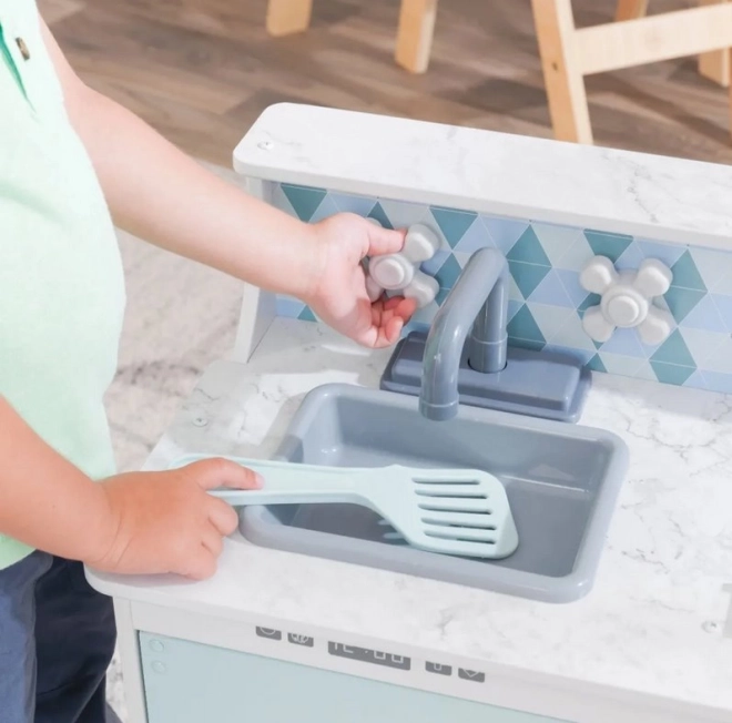 Drvena dječja kuhinjica KIDKRAFT Play & Put Away promišljeno je osmišljena igračka koja donosi radost kuhanja u sigurnom obliku. Realistični elementi, poput grijaćih ploča s dvama upravljačkim gumbićima koji pri okretanju ugodno klikaju te vrata koja se otvaraju, potiču kreativnu igru i razvoj socijalnih vještina.