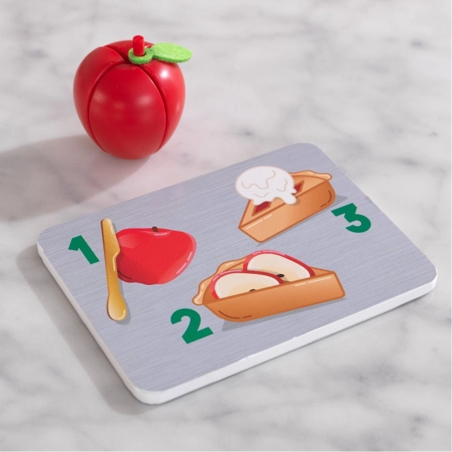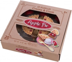 Ovaj kreativni set za igru pretvara dječju kuhinju u ugodnu pekarnicu. Djeca prolaze sve korake pripreme – od rezanja jabuka, preko dodavanja začina, do slaganja pite i njenog posluživanja. Priložena kartica s receptom, koja ujedno služi kao daska, vodi male pekare korak po korak.