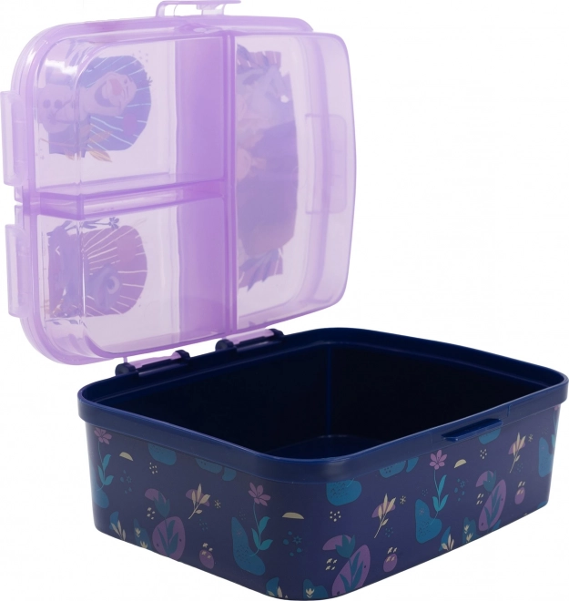 Originalna i praktična lunch kutija s više pretinaca idealna je za djecu koja je mogu nositi u školu, na igralište ili izlet. Izrađena od izdržljivog materijala, izdrži uobičajene padove i udarce tijekom svakodnevne uporabe. Kutija ima dva kata - u donjem dijelu je jedan veliki pretinac, a gornji dio je podijeljen na tri samostalno zatvoriva pretinca.