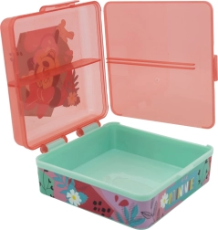 Kvadratna Multi Box za užinu Minnie Mouse idealni je pratitelj za male školarce i izletnike. Zahvaljujući praktičnim pregradama omogućuje organiziranje užine u nekoliko obroka bez miješanja okusa. Djeca ga zbog dizajna rado nose svuda sa sobom.
