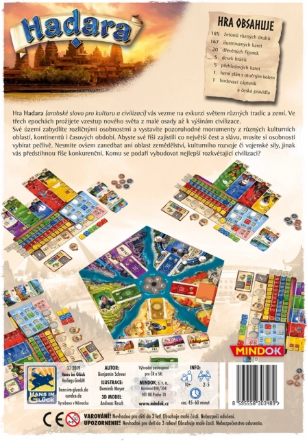 Krenite na putovanje kroz različite kulture i izgradite vlastitu civilizaciju u tri epohe. U pametno uravnoteženoj strategiji Hadara birate ličnosti, razvijate ekonomiju, kulturu i vojsku te uz pomoć rotirajućeg kotača za odabir karata slažete učinkovit engine koji vas vodi do časti, slave i pobjedničkih bodova.