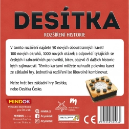Proširite svoju omiljenu kviz-igru tematskim paketom o povijesti. Ovo proširenje donosi 50 dvostranih karata, 100 novih kategorija i 1000 pitanja i odgovora o vladarima, bitkama, otkrićima i drugim povijesnim zanimljivostima. Karte se mogu slobodno kombinirati s drugim proširenjima i njima zamijeniti polovica karata iz osnovne igre. Nije moguće igrati bez osnovne igre Desetka ili Desetka Češka.