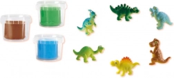 - 1× kovčeg, 6× figurica dinosaura, 3× posudica plastelina (sjajne boje)