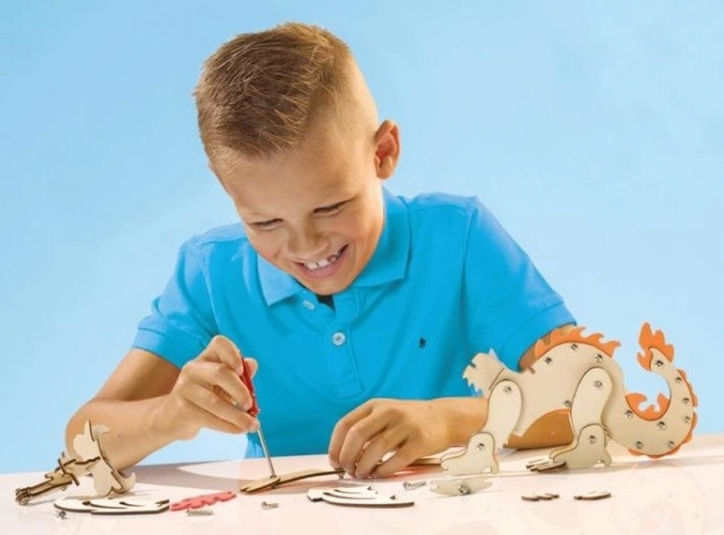 Sastavite vlastitog drvenog zmaja s kreativnim setom SES Creative. Set sadrži sve potrebno – od dijelova od šperploče do alata i naljepnica. Idealan za razvoj fine motorike, kreativnosti i tehničkog razmišljanja kod djece od 6 godina. Zahvaljujući preglednim uputama, montaža je jednostavna i zabavna. Gotovog zmaja možete dodatno ukrasiti naljepnicama i stvoriti originalnu igračku prema vlastitoj mašti.