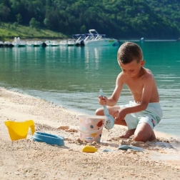 Morski motiv potiče maštu i razigranu kreativnost. Set je osmišljen kao praktična oprema za svakodnevne ljetne aktivnosti i zajedničke trenutke na otvorenom.