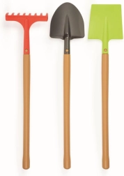 Praktičan set vrtnog alata duljine 70 cm sadrži ašov, lopatu i grablje za svakodnevne radove u vrtu. Idealna opcija za održavanje gredica, premještanje zemlje i ravnanje površine, uz jednostavno rukovanje i univerzalnu primjenu.