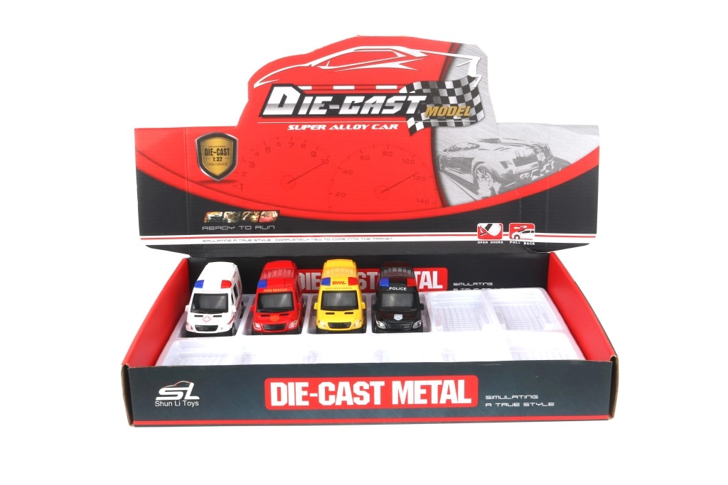 Ova kolekcija donosi četiri popularna motiva – hitna pomoć, vatrogasci, DHL i policija. Svaki autić opremljen je povratnim pogonom (pull back): povucite unatrag i promatrajte žustar start naprijed. Idealno za igre spašavanja, dostave i policijske potjere.