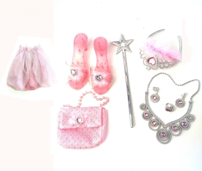 - Suknja, sandalice, kruna, torbica, čarobni štapić, nakit