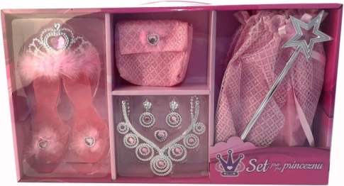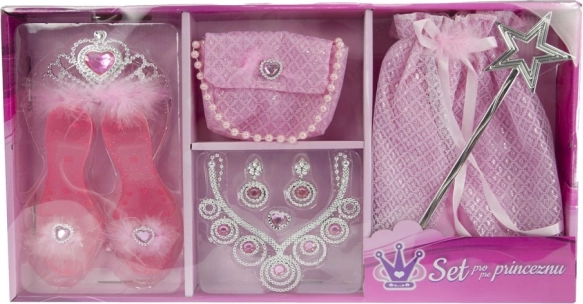 Uđi u svijet bajki s čarobnim setom za male princeze! Sadrži suknju, sandalice, krunu, torbicu, čarobni štapić i nakit – sve za trenutačnu preobrazbu u princezu i sate kreativne igre.