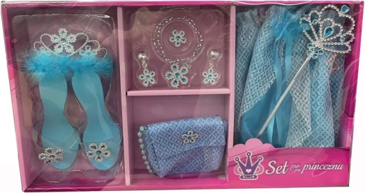 Zahvaljujući usklađenoj plavoj boji, set lako možete kombinirati s drugim dodacima. Odličan je kao poklon za djevojčice koje vole bajke i presvlačenje.