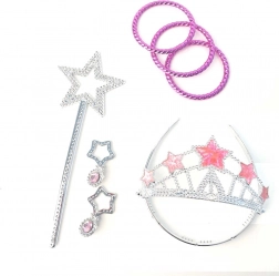 Ovaj princezovski set dodataka savršen je izbor za sve male ljubiteljice bajki. Zahvaljujući kombinaciji krune, naušnica i narukvica, svaka se igra lako pretvara u kraljevsku pustolovinu.