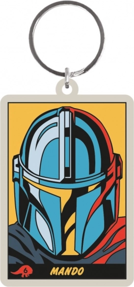 Izdržljiv privjesak s upadljivim motivom kacige i natpisom Mando – praktičan dodatak za obožavatelje svaki dan.