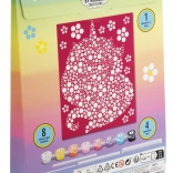 • Kompletna oprema – platno, 8 boja i 4 aplikatora različitih veličina.