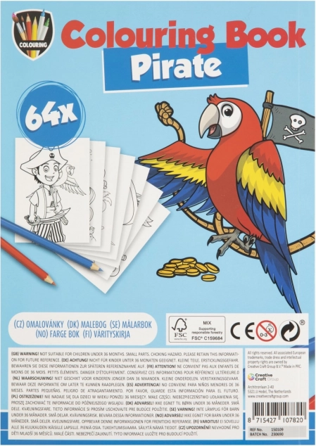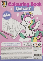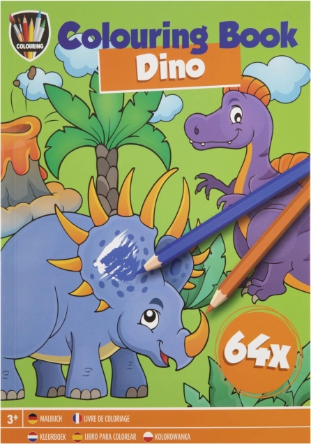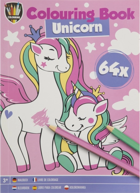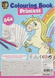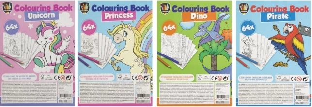 Knjiga bojanki A5 sa 64 kreativnih slika pruža zabavu za djecu. Teme poput Jednorog, Princeze, Dino i Pirate inspiriraju male umjetnike.