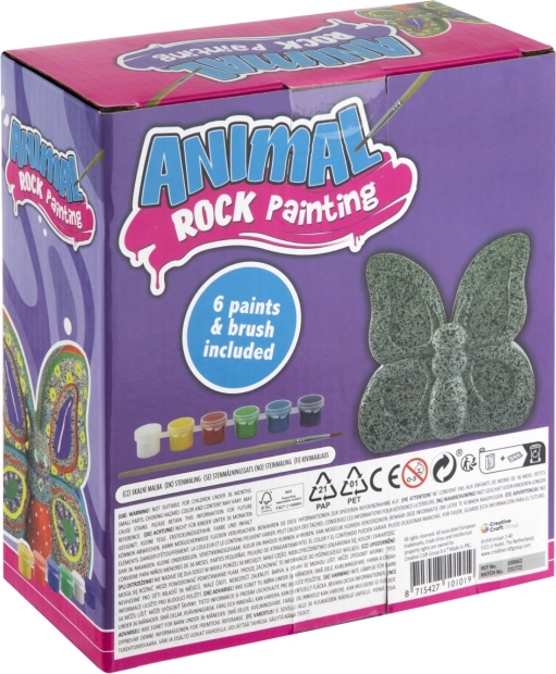 Kreativni set za male umjetnike donosi zabavu i učenje: sadrži kamen u obliku leptira, 6 boja i kist. Idealan za razvoj mašte i fine motorike djece od 3 godine (preporučeno od 5 godina). Jednostavan za upotrebu i izvrstan kao ideja za poklon.