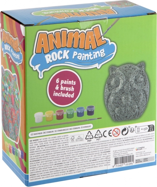 Set sadrži kamen u obliku sove, 6 boja i kist – bez dodatne kupnje možete odmah početi stvarati.