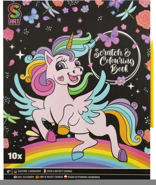 Paket sadrži 10 listova i plastičnu olovku za struganje. Format 21×26 cm lako je držati i maloj djeci te je idealan za dom i putovanja.