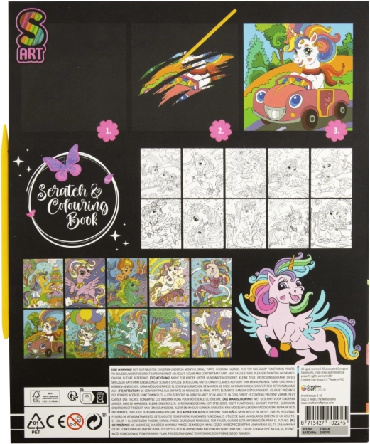 Ovaj kreativni set spaja dvije omiljene aktivnosti u jednom – struganje i bojanje. Djeca mogu najprije ostrugati živopisne motive, a zatim obojiti bojanke na drugoj strani. Zahvaljujući priloženoj plastičnoj olovci rad je jednostavan i siguran.