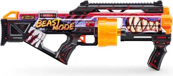 X-Shot Skins Last Stand Beast Mode je snažan dječji blaster za pjenaste strelice s rotirajućim bubnjem za 14 strelica, dometom do 27 m i pakiranjem od 16 strelica s Air Pocket tehnologijom. Zahvaljujući taktičkoj ručki i kliznoj ručici za punjenje lako se upravlja, dok upečatljiv Skins dizajn Beast Mode jamči stil u svakoj bitci.