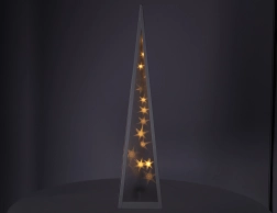 Dekoracija je izrađena od plastike s bijelim metalnim okvirom ispunjenim LED diodama u obliku zvijezda.