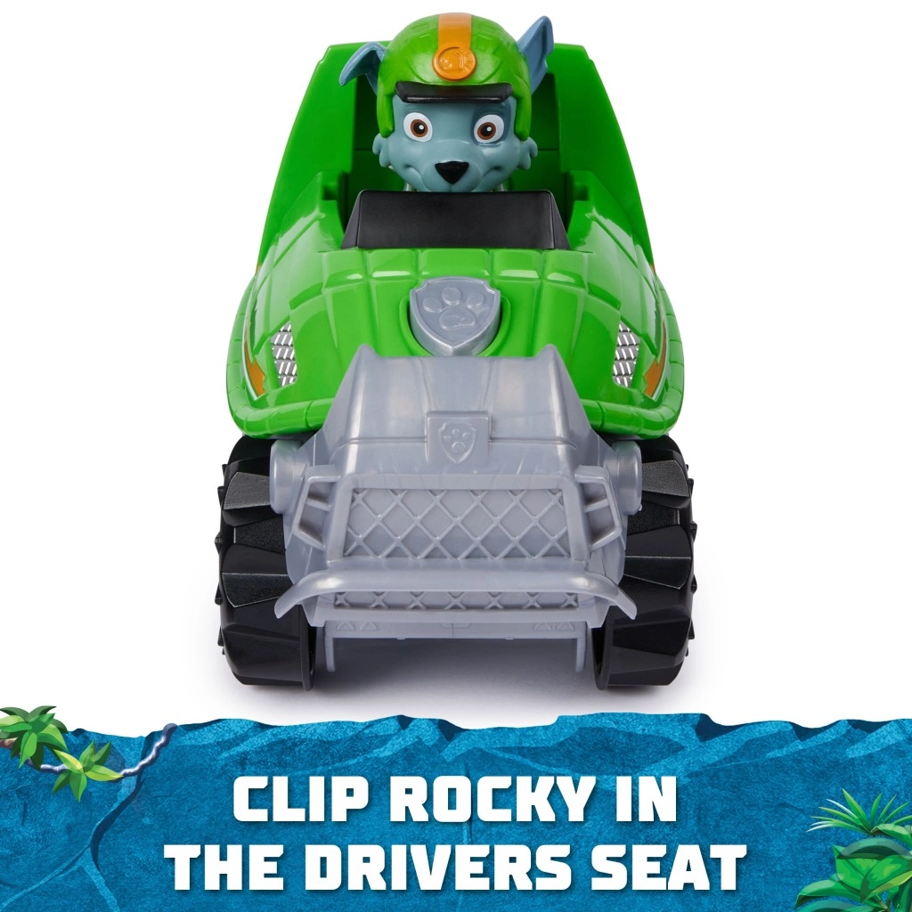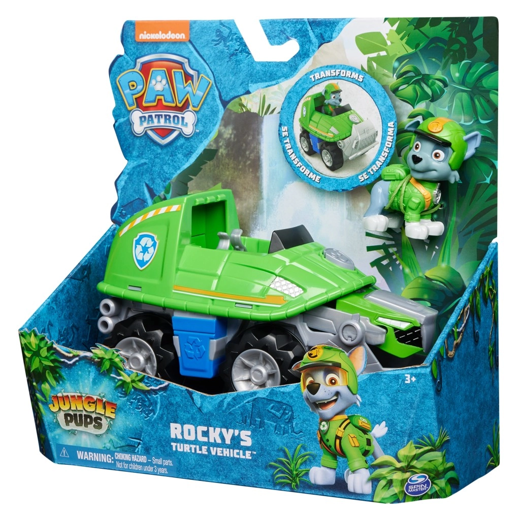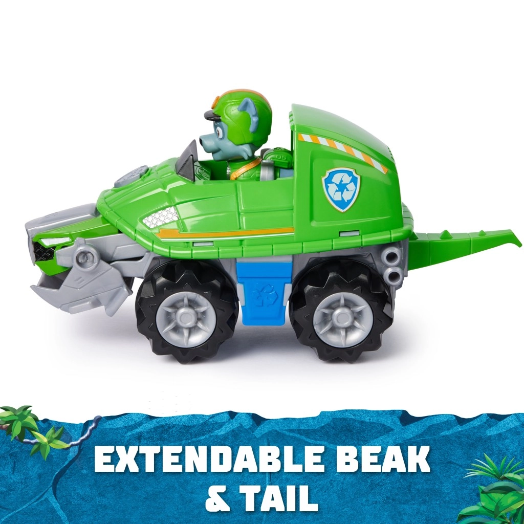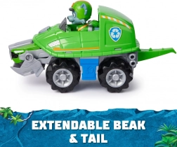 Otkrijte zabavu nadahnutu serijom PSI PATROL. Rockyjevo džungla vozilo se pritiskom na prednji dio transformira – izvuče se kornjačin kljun, sa strane se izvlači rep, a otvaranjem čeljusti dovršava se prebacivanje u akciju. Djeca tako mogu lako odigrati omiljene scene i smišljati nove priče u divljoj džungli.