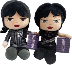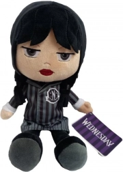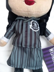 Otkrijte čaroliju omiljenog serijskog junaka s našom stiliziranom plišanom lutkom Wednesday Addams. Ova 32 cm velika lutka vjerno je izrađena u dva ikonska outfita: sivoj školskoj uniformi Nevermore i ekstravagantnoj crnoj haljini, koju je nosila na Nevermore Rave'N Dance.