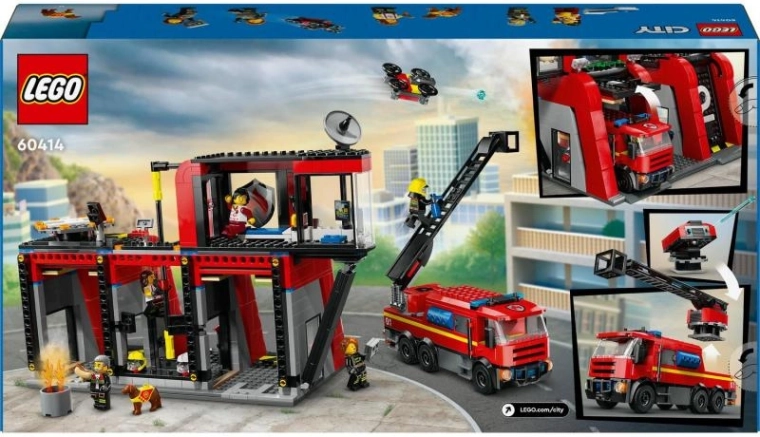 Potaknite dječju maštu uz sjajnu slagalicu LEGO City vatrogasna postaja s vatrogasnim vozilom. Moderna postaja ima upravljački centar, kuhinjicu, spavaonicu, dvije garaže s visokim podiznim vratima, uzletno-sletnu platformu te vatrogasni dron i vozilo s modularnim ljestvama. U pakiranju se nalazi 5 minifigura vatrogasaca i preslatki spasilački pas – sve za dugačke sate akcijske igre i slaganja.