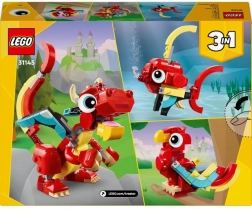 Otkrijte čaroliju kompleta LEGO Creator 3u1 Crveni zmaj koji djeci od 6 godina donosi beskrajnu kreativnu zabavu. Od istih kockica možete složiti pokretnog zmaja, prekrasnog feniksa s jarkim perjem ili elegantnu ribicu s pomičnim perajama. Svaki se model može izložiti i zahvaljujući bogatoj zglobnoj pokretljivosti odlično pozira.