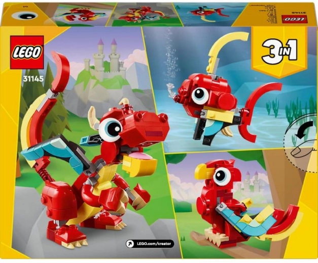 Pustite dječjoj mašti krila s raznovrsnim kompletom LEGO Creator 3u1 Crveni zmaj. Iz jednog pakiranja nastaju čak tri različita modela, a sa svakom pregradnjom stižu nova avanturistička iskustva. Pokretni ekstremiteti, krila i glava omogućuju prirodno poziranje i igru pričama.