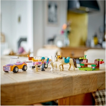 Ovaj šareni set donosi djeci sve potrebno za izlet u prirodu: auto s prikolicom za prijevoz konja i ponija, minilutke Liann i Zoi te mnoštvo dodataka za njegu životinja. Zahvaljujući početnoj kocki, slaganje je brzo i intuitivno, pa je idealno za mlađe graditelje. Aplikacija LEGO Builder dodatno omogućuje pregledavanje modela u 3D-u i praćenje napretka.