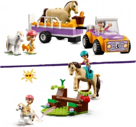 LEGO FRIENDS prikolica za konje i ponija: 105 dijelova, auto s prikolicom, konj, ponij, Liann i Zoi. Lako slaganje za djecu od 4 godine i kreativna igra.
