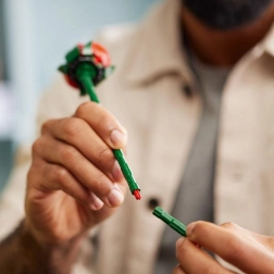 Opustite se dok slažete LEGO buket koji će vam donijeti radost i prekrasan dekorativni element u vaš interijer. Set sadrži dvanaest crvenih ruža – četiri potpuno procvjetane, četiri u pupoljcima i četiri pupoljaka s dugim zelenim stabljikama. Sve to upotpunjuje četiri grančice gipsofile s malim bijelim cvjetovima. Ovaj elegantni buket može se izvrsno kombinirati s drugim setovima iz LEGO botaničke kolekcije.