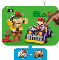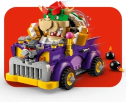 Krenite u neobuzdanu vožnju s Bowserovim muscle carom i doživite bitke i kreativnu igru. Povucite žutu polugu i gledajte kako se pokreće ukras na poklopcu ili se aktiviraju drugi kaskaderski trikovi. Posjednite BOWSERA za volan i povežite set s početnim setom kako biste uživali u zvuku trube, riktanju motora i škripi guma.