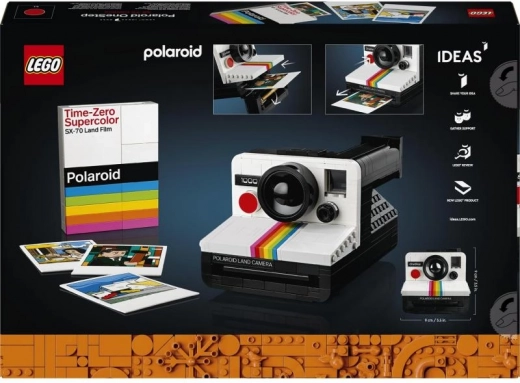 Dio seta je i sklopivi paketić kazeta Time‑Zero Supercolor SX‑70 s tri snimke (uključujući portret izumitelja Polaroida Edwina H. Landa), odabir naljepnica “OneStep” ili “1000” te ilustrirana brošura. Jasne upute nalaze se u kutiji i u aplikaciji LEGO Builder. Dovršen model dimenzija 9 × 9 × 15 cm istaknut će se na polici i razveseliti svakog ljubitelja fotografije i dizajna.
