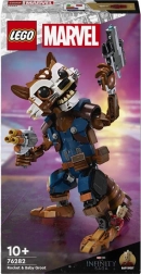 Autentična figurica Rocketa dočarava njegov buntovni izraz i ljubav prema oružju – u rukama drži opružni izbacivač i blaster. Zahvaljujući zglobovima u svim glavnim dijelovima (osim laktova), lako je postaviti u dinamične poze, a dodaje se i vjerni partner Baby Groot kojeg je moguće pričvrstiti na rame.